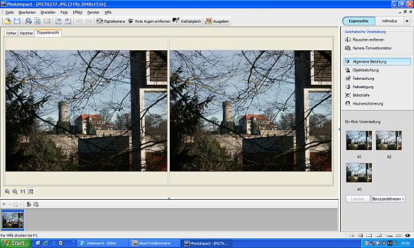 Zunächst glänzt die reine Bildverarbeitungssoftware (neben dem immensen Beipack) durch die einzigartige Variation der Grundeinstellung des Arbeitsfeldes ... von Express Fix (für Einsteiger und schnelle Bearbeitung ... über Web und DVD/Video bis hin zur eigentlichen Profieinstellung mit seinen 100en von Filtern und Arbeitswerkzeugen. Auch hier kann man aber mit Assistenten oder individuell arbeiten.